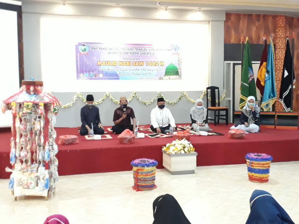 Proses perayaan Maulid Nabi SAW 1442 Hijriah dengan tema "Meneladani Sunnah Rasulullah SAW Sebagai Spirit Menghadapi Pandemi Covid-19" merupakan kegiatan seluruh Ormawa di lingkungan Universitas Bina Mandiri yang diselenggarakan oleh Senat Mahasiswa F-STIK selaku panitia kegiatan. Terkumpul 5 buah "Tolangga" yang nantinya akan di berikan di 5 Panti Asuhan sekitar Kota Gorontalo. Kamis(29/10)
