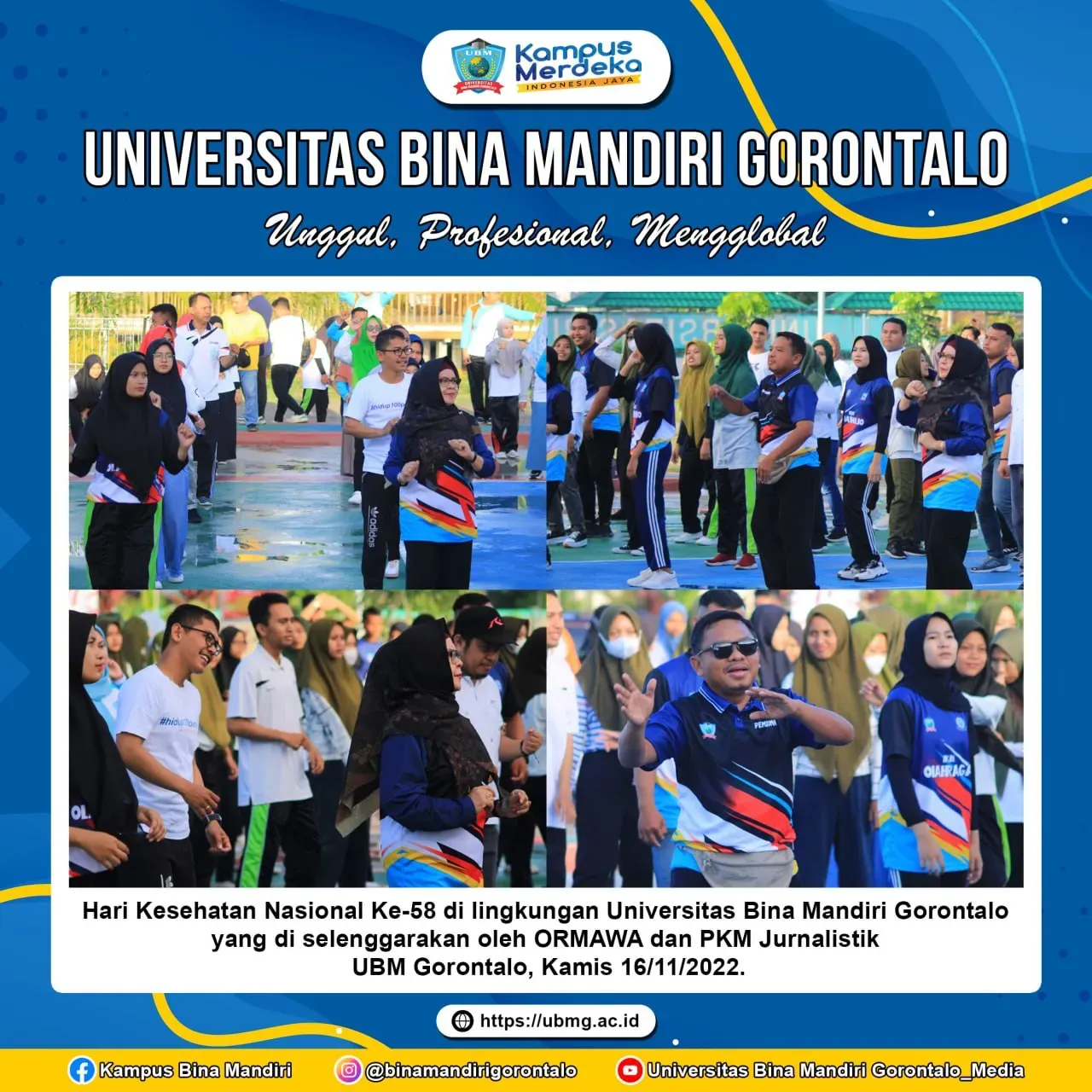 Kampus.UBMG - Peringatan Hari Kesehatan Nasional (HKN) tahun 2022 yang dilaksanakan Universitas Bina Mandiri (UBM) Gorontalo, berlangsung semarak.