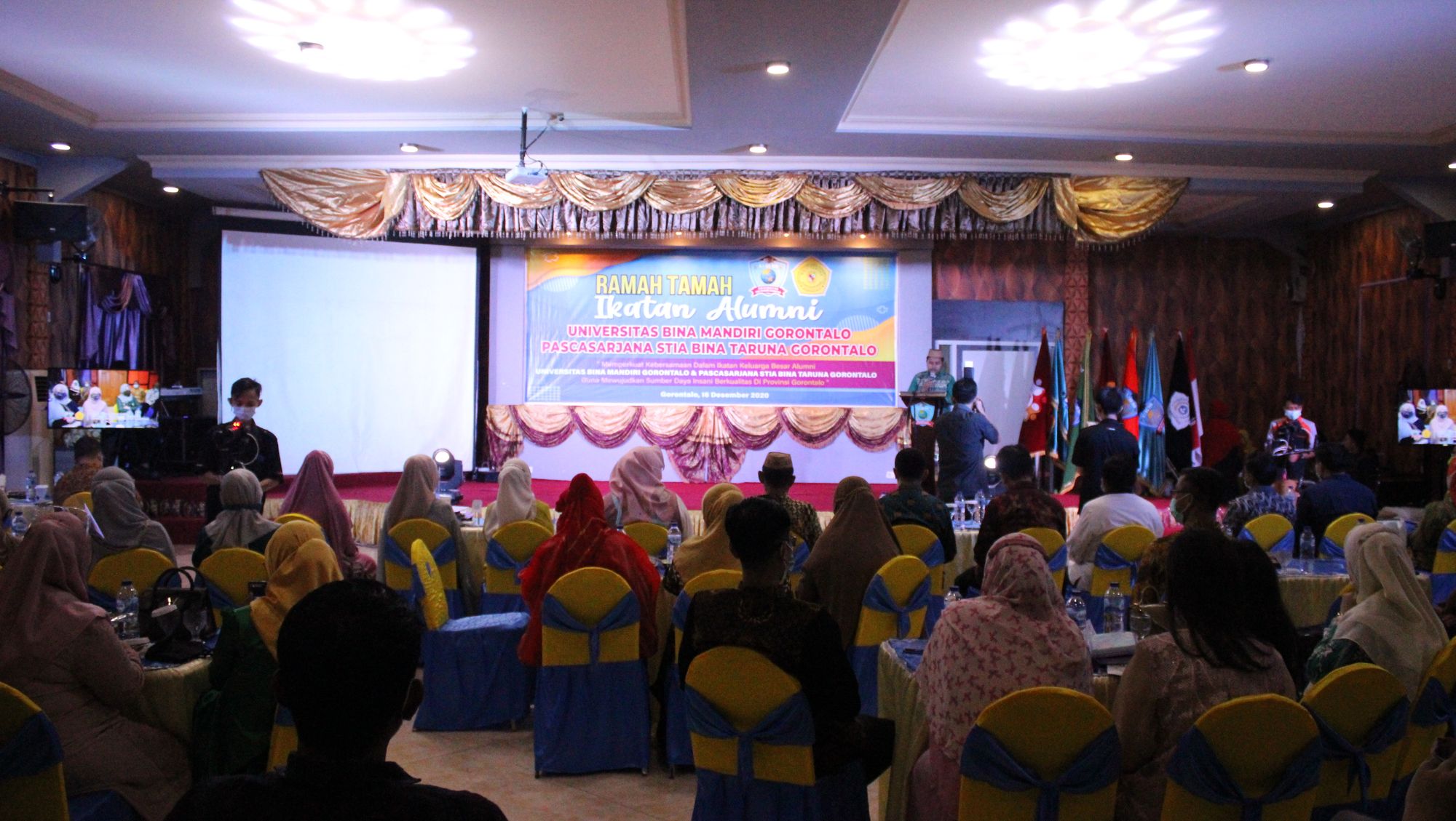 KAMPUS UBMG - Universitas Bina Mandiri Gorontalo dan Program Pascasarjana STIA Bina Taruna Gorontalo menggelar acara ramah tamah ikatan alumni tahun 2020. Rabu (16/12/2020). Kegiatan yang digelar di Ballroom Bina Mandiri Gorontalo ini dihadiri oleh perwakilan calon wisudawan dan wisudawati dua institusi tersebut.