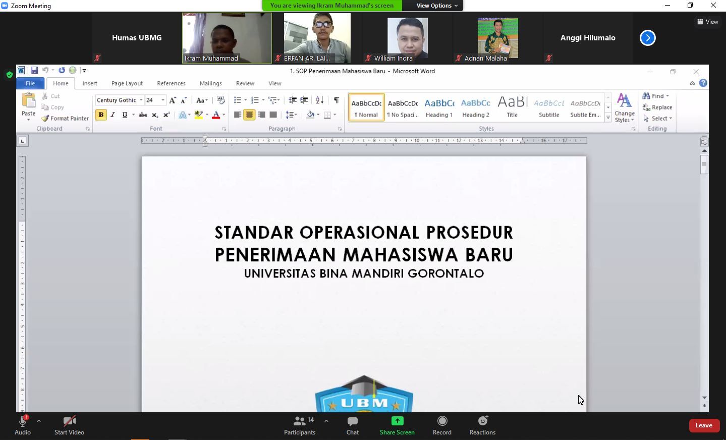 Rapat yang digelar secara virtual ini, dibuka langsung oleh Wakil Rektor 1 Bidang Akademik & Kemahasiswaan, UBM Gorontalo, William Indra S. Mooduto, SE., M.SA., Ak., CA. Dalam sambutannya, William Indra memberikan apresiasi dan mengharapkan SOP ini bisa meningkatkan kualitas layanan mahasiswa baru.