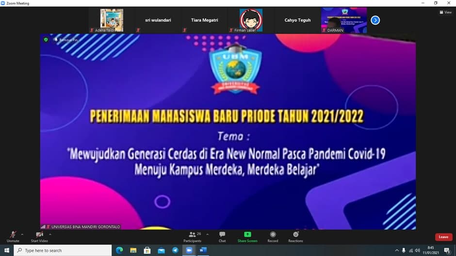 “Alhamdulillah hari ini telah selesai sosialisasi penerimaan mahasiswa baru secara virtual. Semuanya berjalan lancar,” ujar Erfan Laindjong MEpid, salah satu anggota tim sosialisasi UBM Gorontalo.