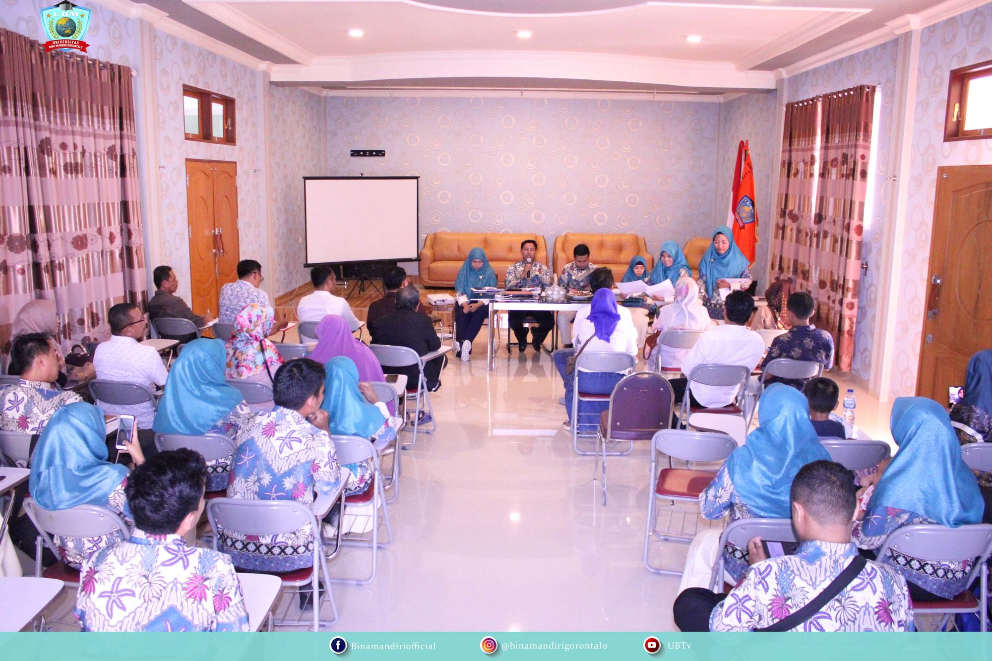 KAMPUS UBMG - Fakultas Ekonomi & Bisnis (FEB), Universitas Bina Mandiri Gorontalo menggelar pertemuan dengan seluruh dosen pengampu mata kuliah baik dosen tetap maupun dosen luar biasa di lingkungan FEB. Sabtu (22/2). Pertemuan yang digelar di Aula FEB ini dibuka langsung oleh Dekan FEB, Imam Mashudi S.Pd, M.Pd. Pada pertemuan yang turut hadiri Ketua BPH Yayasan Bina Mandiri Gorontalo William Indra S. Mooduto SE, MSA, Ak.CA, Wakil Rektor 1 Bidang Akademik & Kemahasiswaan, Universitas Bina Mandiri Gorontalo, Frista Iin Wahyuni SE, M.Pd, ini juga membahas tentang persiapan pelaksanaan pembelajaran untuk semester genap tahun akademik 2019/2020.