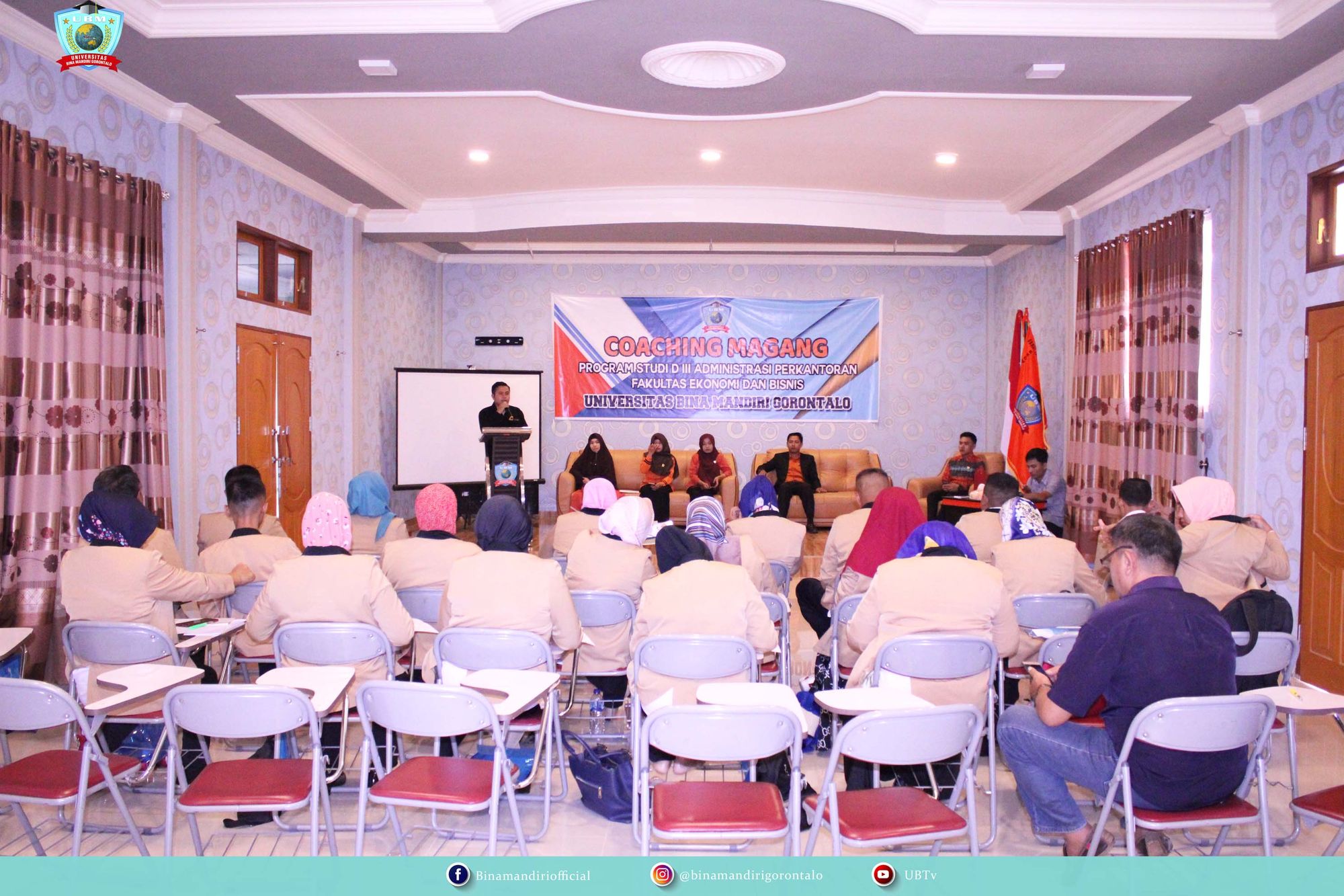 KAMPUS UBMG - Menteri Pendidikan dan Kebudayaan ( Mendikbud) Nadiem Makarim kembali meluncurkan kebijakan Merdeka Belajar kali ini ditujukan bagi pendidikan tinggi bertajuk Kampus Merdeka. Kampus Merdeka mengusung empat kebijakan di lingkup perguruan tinggi, pertama sistem akreditasi perguruan tinggi, pembukaan prodi baru, kemudahan menjadi PTN-BH serta hak belajar tiga semester di luar prodi. Salah satu kebijakan yang tertuang di poin ini adalah magang atau praktik kerja di industri atau organisasi serta pengabdian masyarakat. Di Universitas Bina Mandiri Gorontalo, program magang atau pengabdian pada masyarakat khususnya terjun langsung ke desa desa sudah dilaksanakan sejak beberapa tahun terakhir. Hal ini diungkapkan oleh Ketua BPH Yayasan Bina Mandiri Gorontalo, William Indra S. Mooduto SE, MSA, Ak.CA. saat memberikan sambutan pada rangkaian kegiatan pembukaan coaching magang mahasiswa Program Studi Administrasi Perkantoran, Fakultas Ekonomi & Bisnis, angkatan III, semester 6.