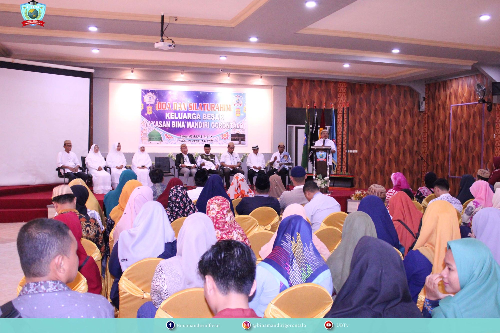 KAMPUS UBMG - Yayasan Bina Mandiri Gorontalo (YBMG) menggelar kegiatan Doa dan Silaturahim untuk seluruh Keluarga Besar YBMG. Sabtu (29/2). Kegiatan yang digelar di Ballroom Bina Mandiri Gorontalo ini juga diisi dengan ceramah agama yang menghadirkan Ustad. Husni Al Idrus LC sebagai pemberi ceramah. Selain keluarga besar YBMG, silaturahim yang dihadiri oleh Dewan Pembina YBMG, Hj. Hasmin Modanggu ini turut dihadiri oleh jemaah calon umroh PT. Lamahu Tour & Travel.